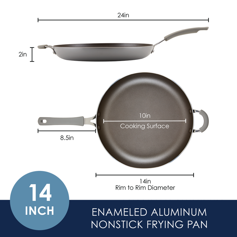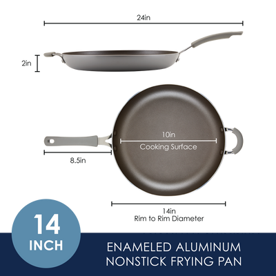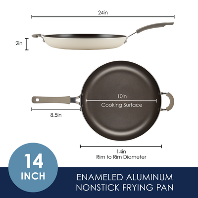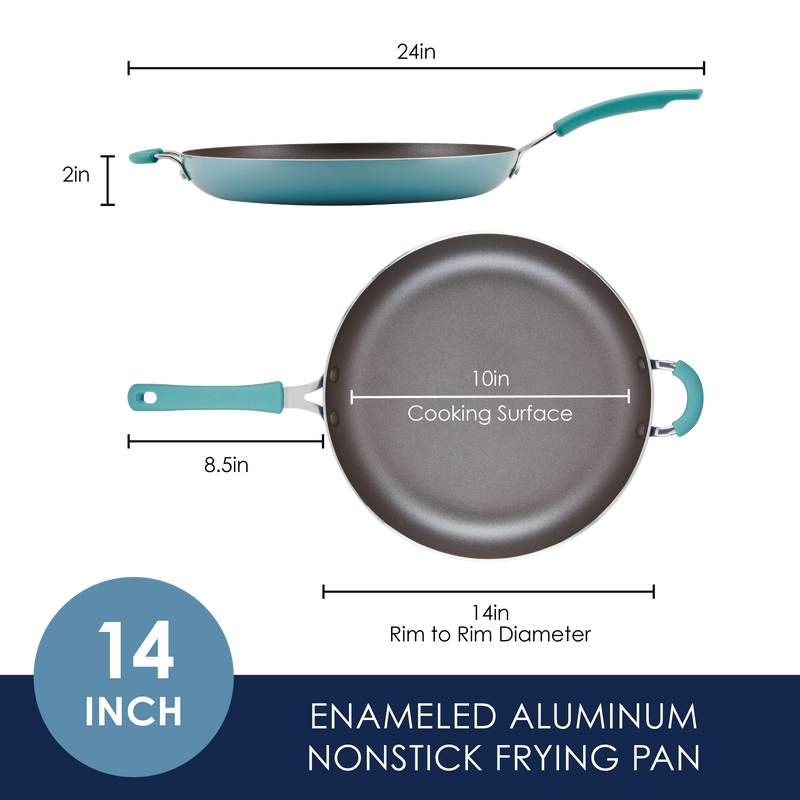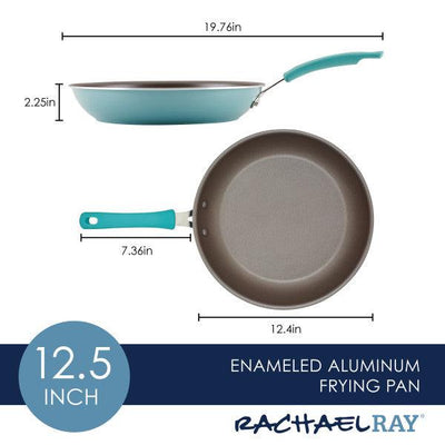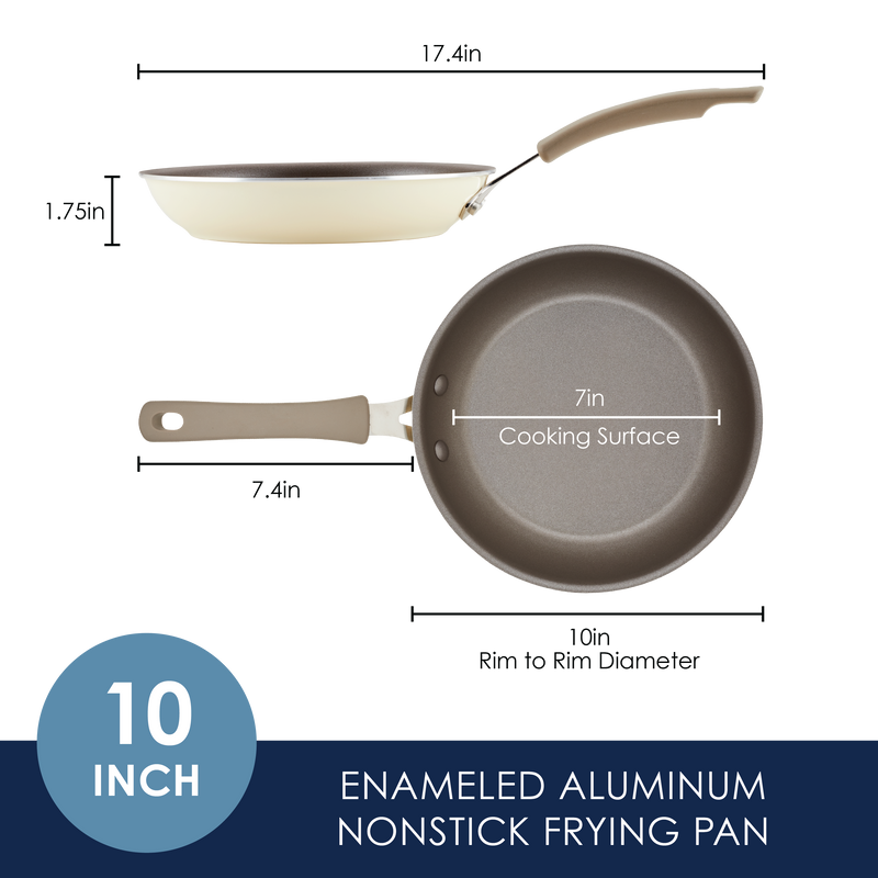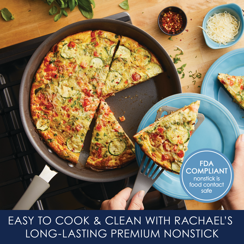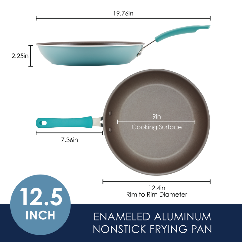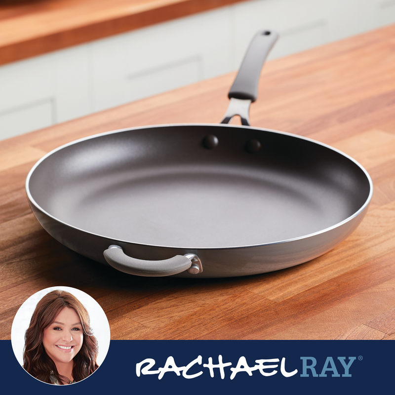 It’s time to step up your cooking game! This Rachael Ray Cook + Create Frying Pan is not just super practical; it also brings a touch of luxe to your cooking experience, with improved nonstick and convenient features. The cookware is made with thick-gauge hard-anodized aluminum, which is twice as hard as stainless steel for a sturdy feel, reliable stovetop performance, and quick, even heating. And the new premium triple-layer nonstick gives you the ultimate food release, scratch resistance, and durability, with nonstick-coated dual rivets attaching the handle for smooth stirring and easy cleaning. Plus, you’ll love the comfy silicone-grip handle. Oh yeah, and the fry pan is oven safe to 400 degree F. Cook + Create was designed to maximize cooking surfaces and capacity for the ultimate in cooking efficiency, while the collection’s fun color options make it easy to complement any home decor, so these contemporary designs will always be in style. If you’re ready to get fun and functional in the kitchen, you’re ready to Cook + Create!