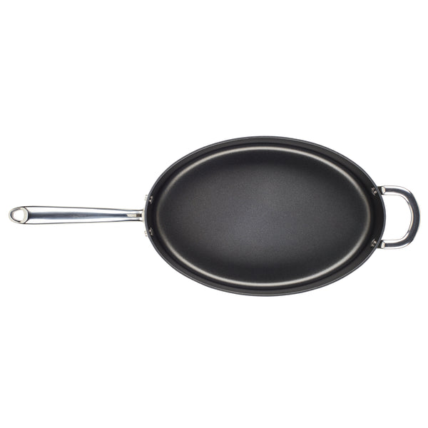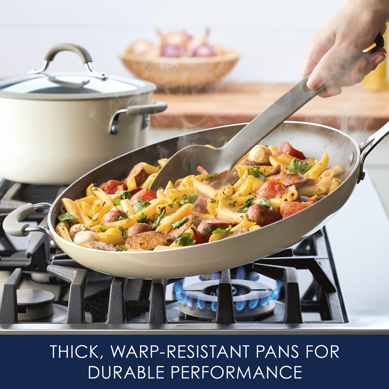 Make enough stove top pasta for the whole family with this oval hard anodized sauté pan. Built for quick, even heating, this performance cookware is finished with long-lasting nonstick for effortless food release and easy cleanup. Oven safe to 500°F.