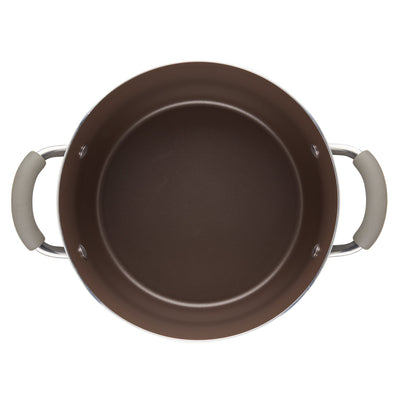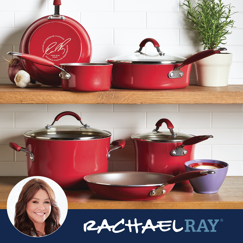 Get high performance, versatility, convenience, and practical durability in the kitchen with this 14-piece nonstick cookware and measuring cup set from Rachael Ray. Color meets convenience with the distinctive espresso-colored nonstick that releases foods effortlessly, complements the exteriors, and cleans up easily. Rubberized stainless steel handles on the cooking set are dual riveted for added strength, and the set includes 1/4-cup, 1/3-cup, 1/2-cup, 1-cup, and 2-cup measuring cups in assorted colors to get recipes going right away.