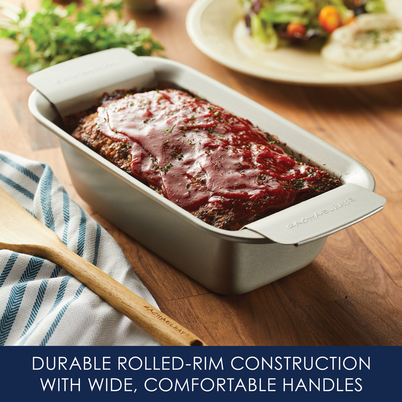 Bake banana breads, pound cakes, meatloaf, and more with the versatile this versatile nonstick loaf pan. Made from heavy gauge steel that resists warping, this bakeware is finished with long-lasting nonstick for easy food release and cleanup. Oven safe to 500°F.