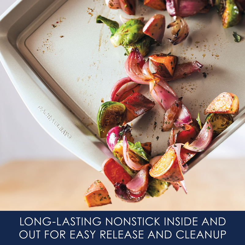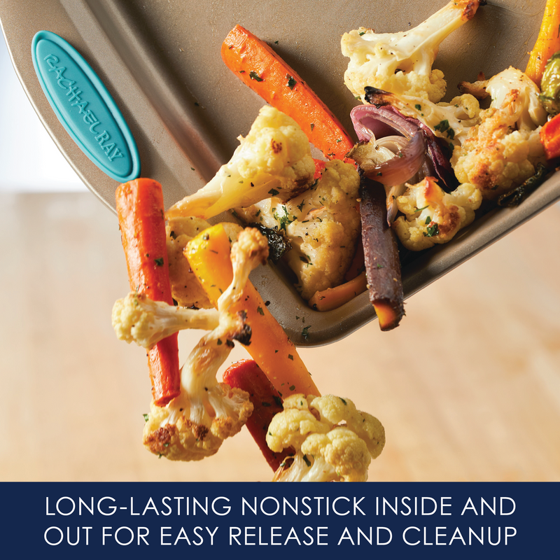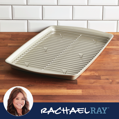 Make any sheet pan or baking sheet nonstick in an instant with this silicone nonstick baking and roasting mat from Rachael Ray. This practical and convenient sheet pan insert provides super slick, effortless food release and makes cleanup a breeze. The 14.75-inch x 10-inch removable silicone bake mat fits a variety of Rach's cookie sheets and is oven safe to 450°F so it's ideal for oven roasted veggies and crispy pan pizzas, too. Plus, the baking surface has a convenient grid outline for perfect portioning. Dishwasher safe.