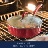 Get high performance and durability with this essential cookware set. Crafted from durable aluminum that promotes fast, even heating, these versatile pots and pans are finished with long-lasting nonstick for effortless food release and easy cleanup. Oven safe to 400°F.